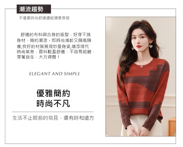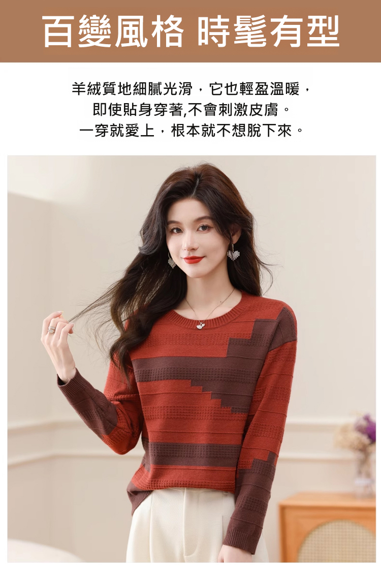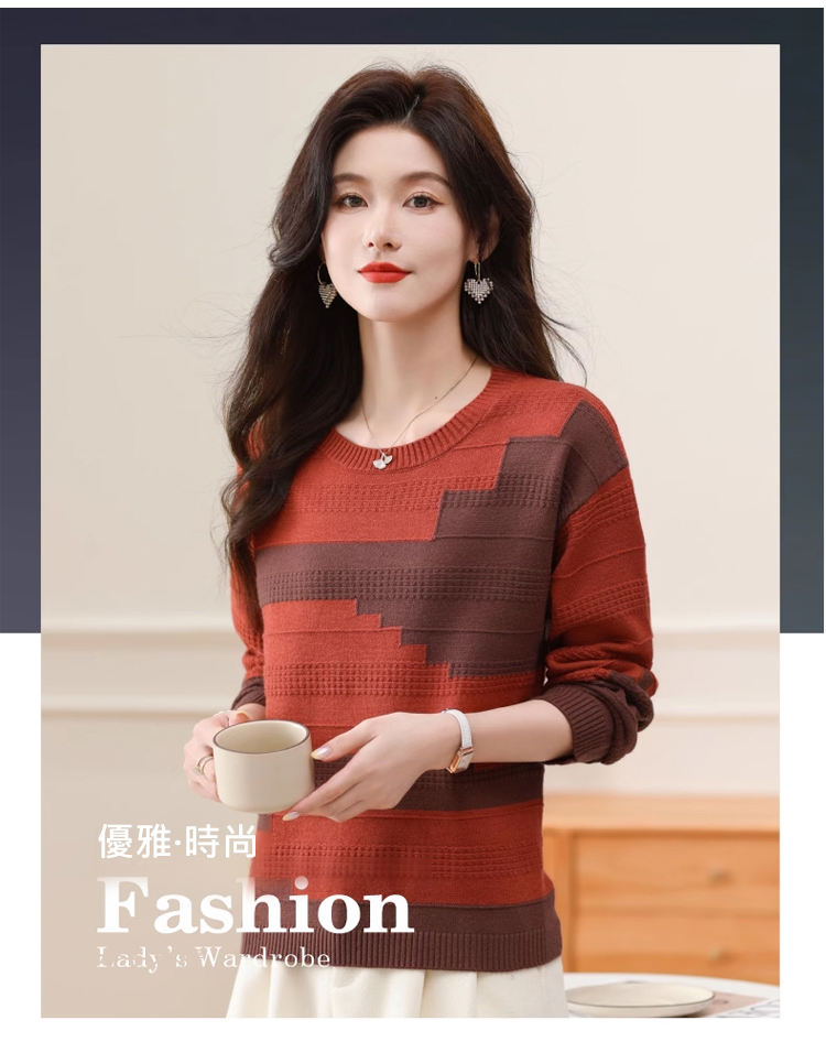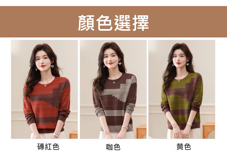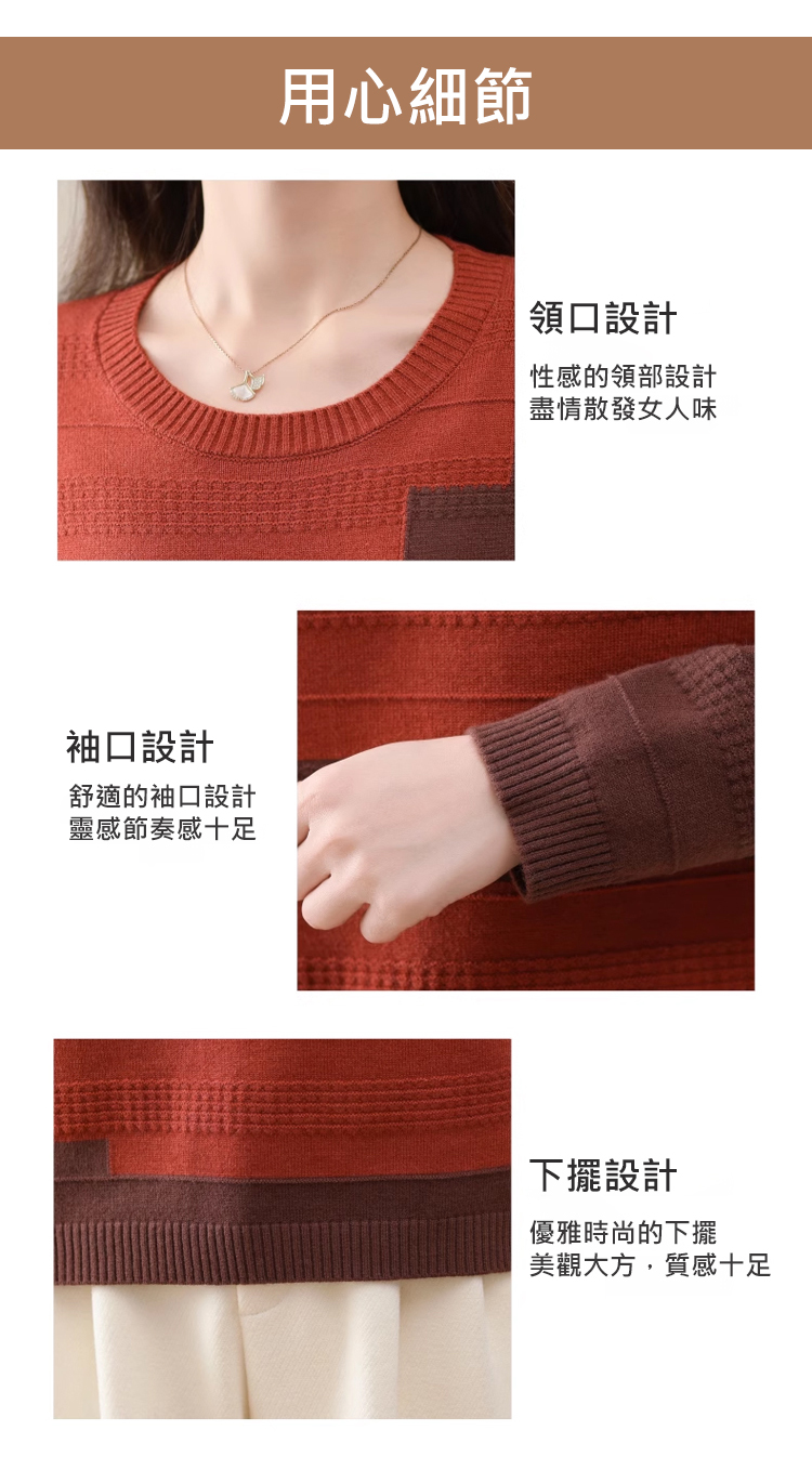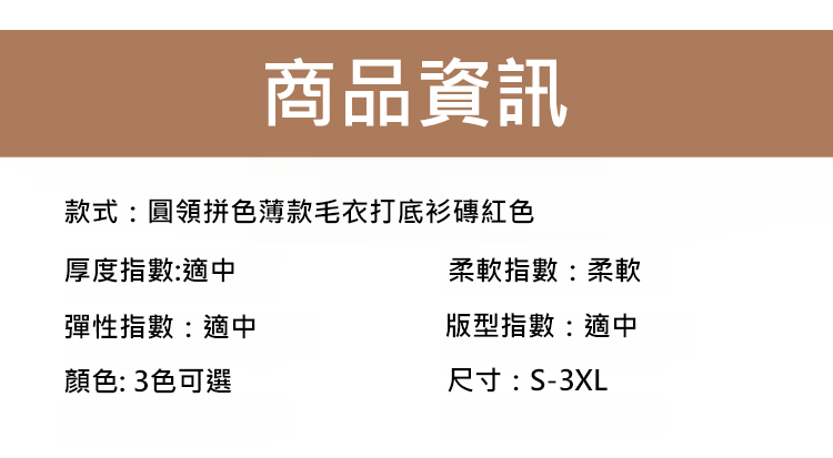 圓領拼色薄版毛衣打底衫