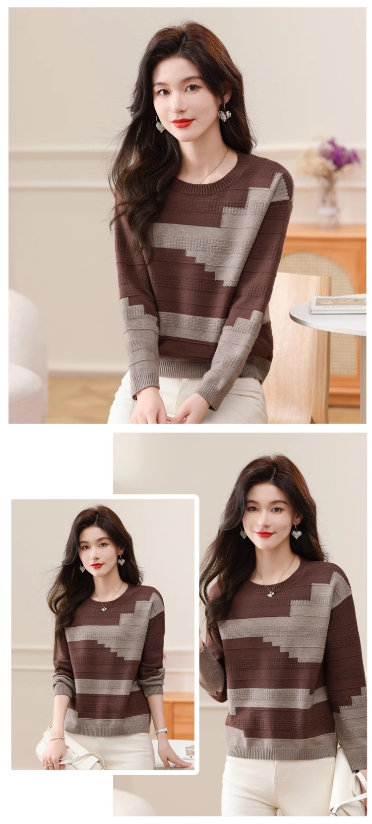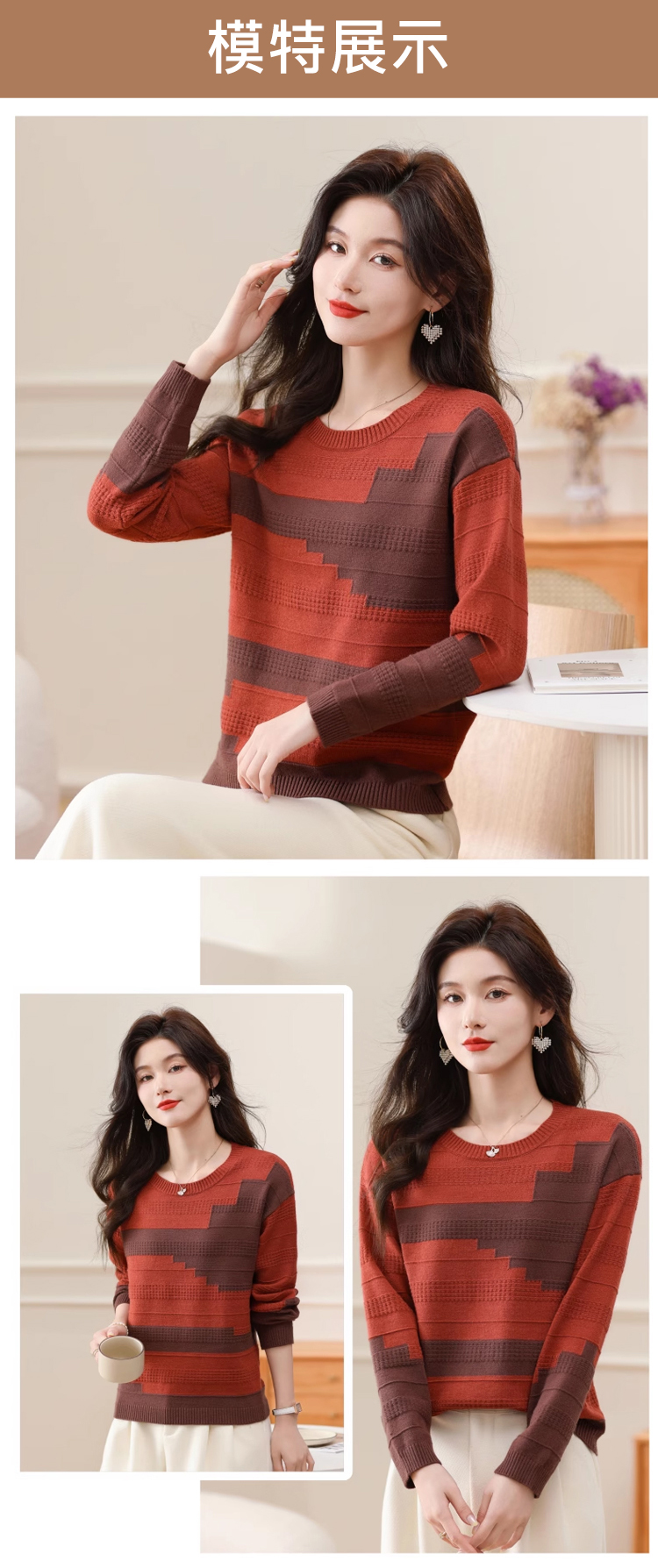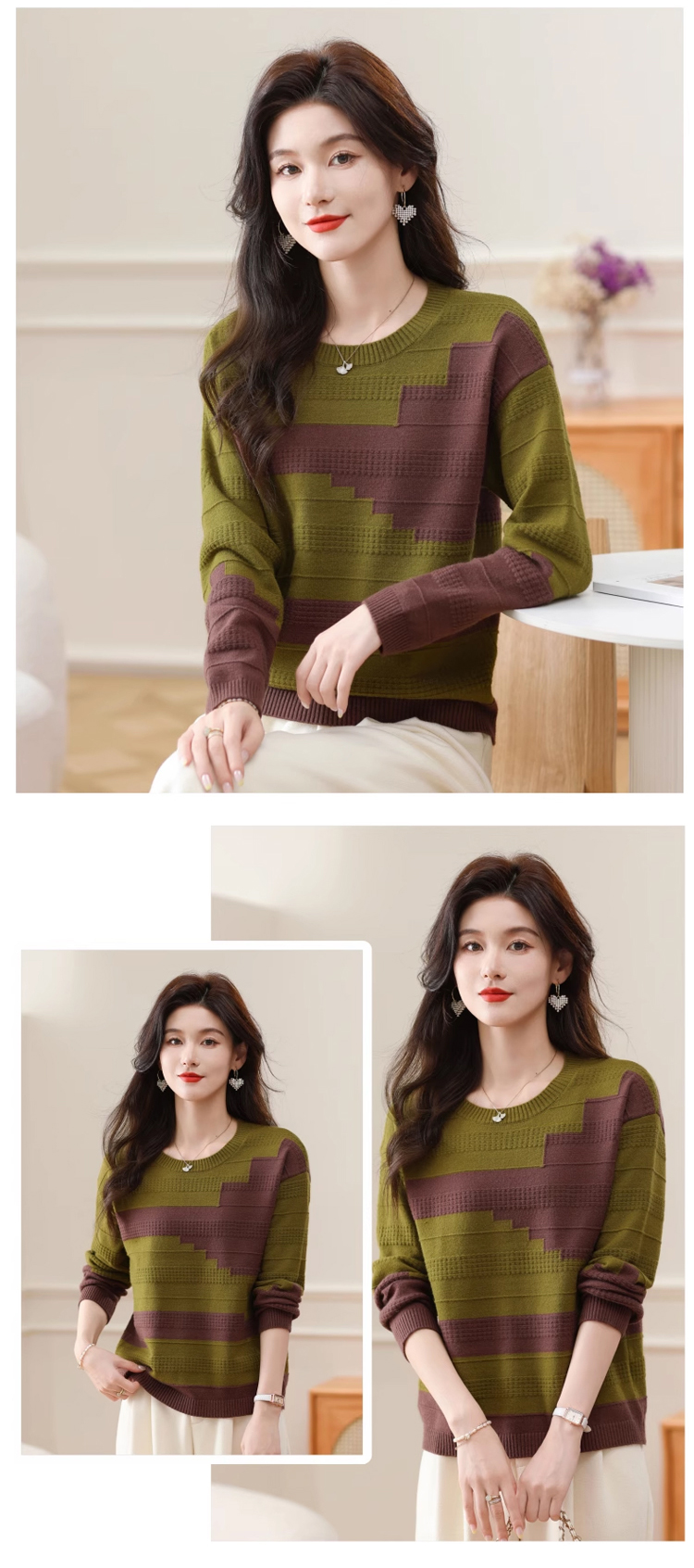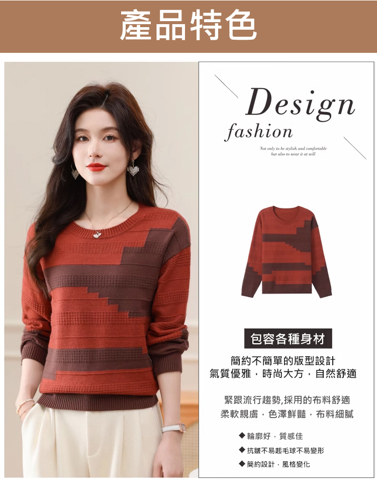 圓領拼色薄版毛衣打底衫