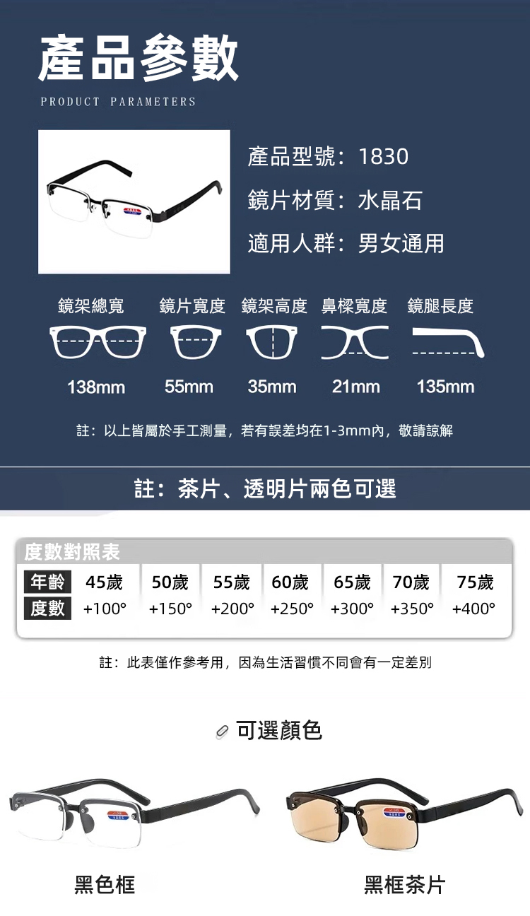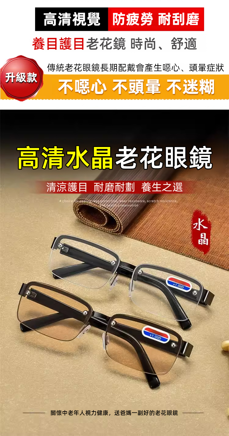 半框護目顯氣質老花眼鏡